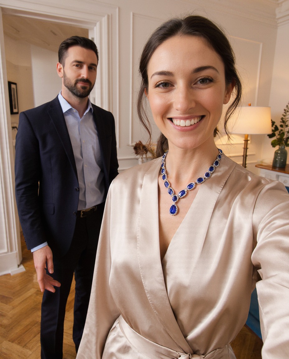 Внутри, на белой шелковой подушечке, сияло колье. Это была не бижутерия. Лена, хоть и не была экспертом, сразу поняла: это белое золото и бриллианты. Тонкая, изящная работа. В центре композиции сверкал крупный сапфир в форме капли. Вещь стоила целое состояние. Уж точно больше, чем три месячных зарплаты Вадима, о которых он ей постоянно ныл.